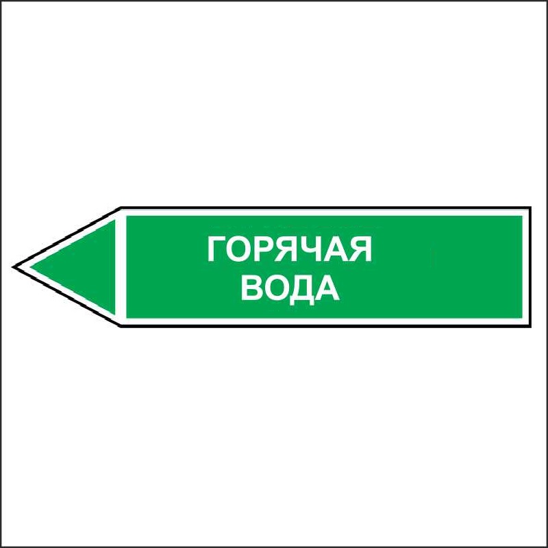Знак маркировки трубопровода Горячая вода - направление движение налево