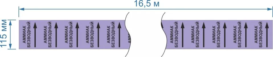 Опознавательная маркировочная лента фиолетовая с черной надписью Аммиак безводный и стрелкой 115мм x 16,5м