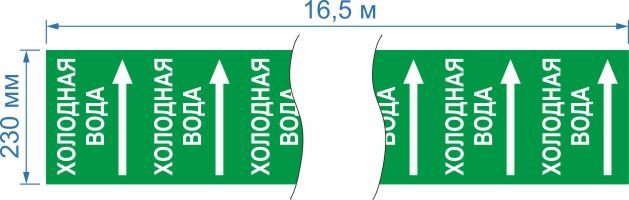 Опознавательная маркировочная лента зеленая с белой надписью Холодная вода и стрелкой 230мм x 16,5мКод: ЦБ-00019227