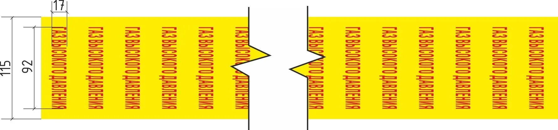 Лента маркировочная Газ низкого давления, 115 мм х 20 м, 43 мм, цвет фона желтый
