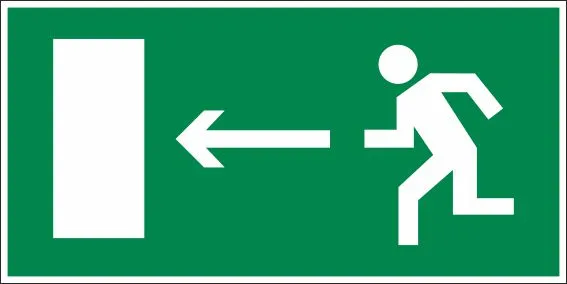 Знак E04 Направление к эвакуационному выходу налево, 300х150 мм, основание пластик, толщина 3 мм, самоклеящаяся фотолюминесцентная в иниловая пленка, цвет белый/зеленый ГОСТ 12.4.026-2015