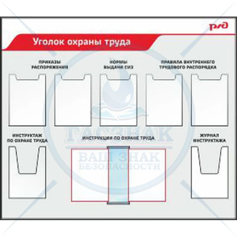 Стенд по технике безопасности Работы на станках РЖД 5 плакатов А3, карман А3 (1100х1100; Пластик ПВХ 4 мм, алюминиевый профиль; )