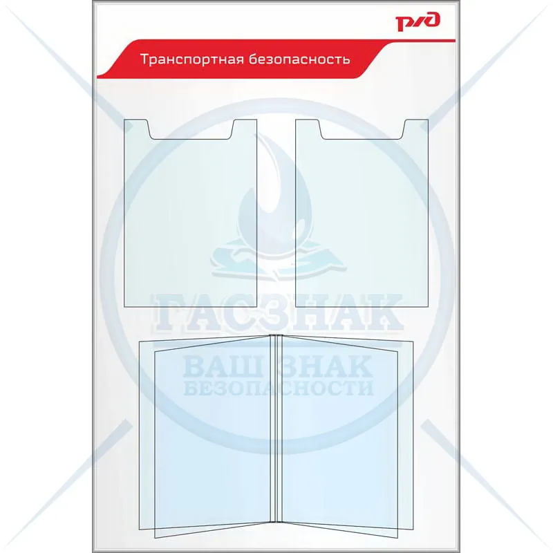 Стенды по охране труда для ОАО РЖД Транспортная безопасность, 2 плоских кармана А4,перекидная система А4 на 4 рамки (Пластик ПВХ 4 мм, алюминиевый профиль; 900х600)